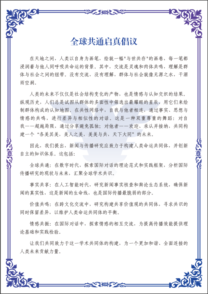 为更好地回应国际传播的时代之问,由浙江大学传媒与国际文化学院牵头、与会专家共同讨论,论坛发起《全球共通启真倡议》,提出新闻与传播研究应致力于构建人类命运共同体,以全球共通、事实共享、价值共鸣、情感共振的方式创新中国自主的知识体系,讲好中国故事。(浙江大学传媒与国际文化学院/供图、视频)