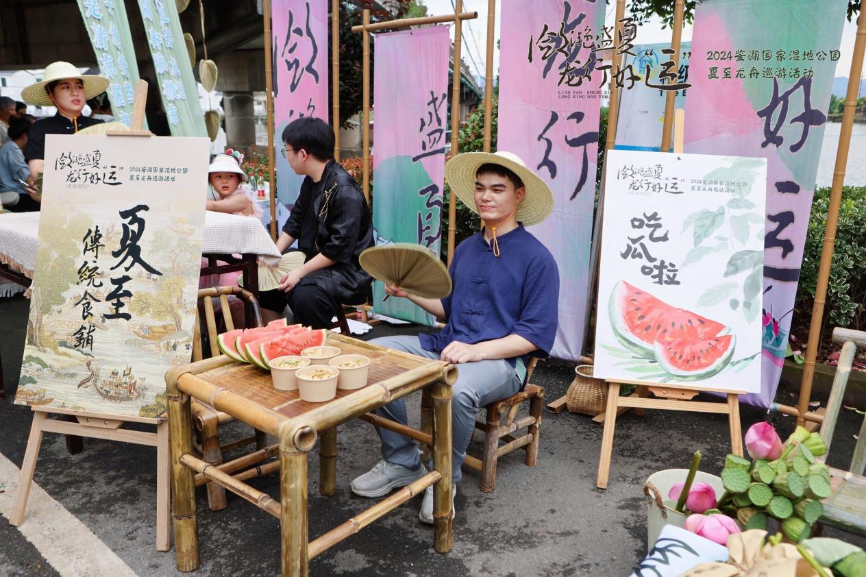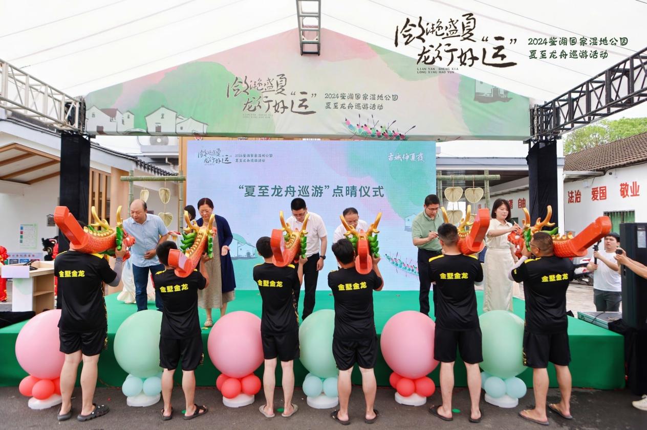 6月21日,2024鉴湖国家湿地公园“夏至龙舟巡游”活动在绍兴市越城区陶堰街道启动。