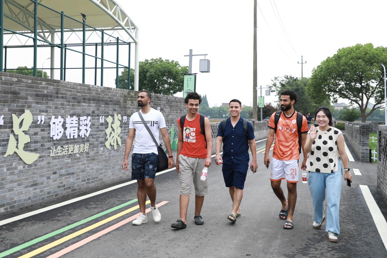 “I am very enjoy this game with Chinese friends!”来自浙江大学的意大利留学生米罗表示意犹未尽。作为一名资深球迷,他对荣星村的这座足球公园赞不绝口。赛前,米罗和他的队员们一起参观了荣星村和足球公园,在他看来,乡村能够拥有设施如此完备的足球场是一件喜人的事情。