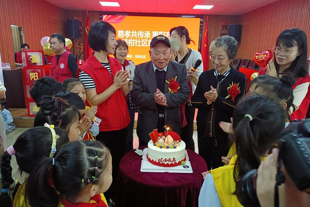 一份慈孝包、一张生日卡片、一份蛋糕、一顿爱心餐、一张纪念照……每月的第二个周日,在浙江省温州市鹿城区桂柑文化家园,总会有一场“慈孝生日会”在阵阵欢声笑语中举行,社区工作人员定期为80岁以上的老人们集体过寿。