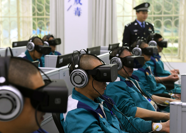 民警在对戒毒人员开展VR虚拟现实毒瘾评估矫治。(浙江省拱宸强制隔离戒毒所供图)