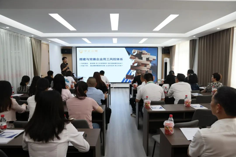 此外,交流学习活动还特别邀请了中企法顾华东大区总监、高级管理咨询顾问、劳动法研究院高级研究员苏桐以《搭建与完善企业用工风控体系》为主题作专题讲座。苏桐结合实际案例,从招聘、入职、日常工作、离职为切入点,细致讲解合规用工相关知识,引导企业意识到用工问题的重要性。