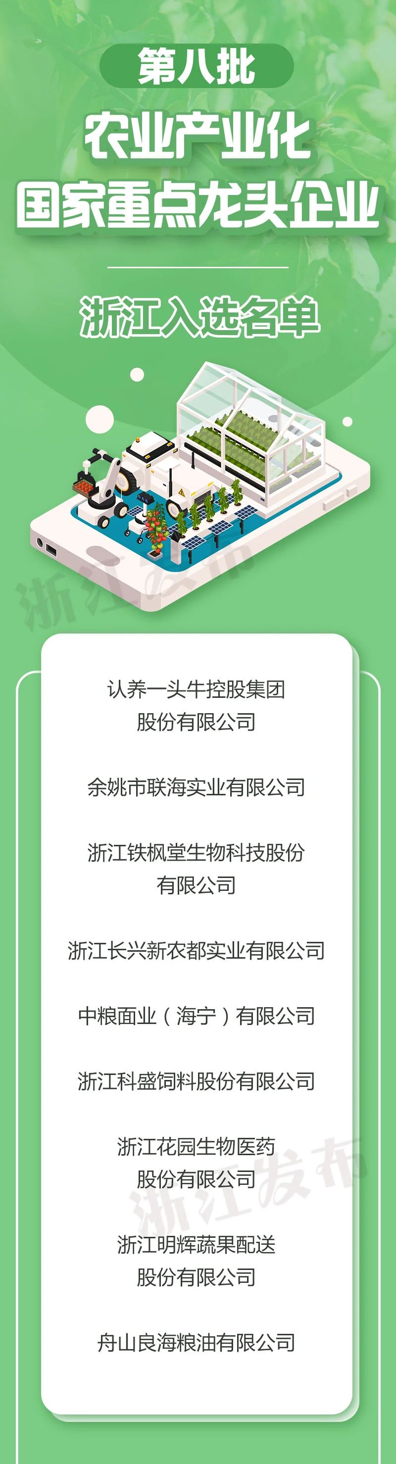 近日,农业农村部公布了第八批农业产业化国家重点龙头企业名单,浙江申报的9家企业入选。