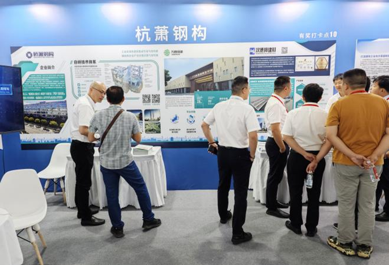 展会期间,杭萧钢构具有抗震性能好、建设周期短、得房率高、绿色环保等特点的第三代钢结构住宅体系——钢管混凝土束结构住宅建筑体系,汉德邦建材具有施工速度快、整体刚度强、装配式率高、经济综合造价低等优势的“免拆底模钢筋桁架楼承板”产品,为产业发展注入新活力的万郡绿建数字化互联网交易平台,吸引了众多与会嘉宾的关注。