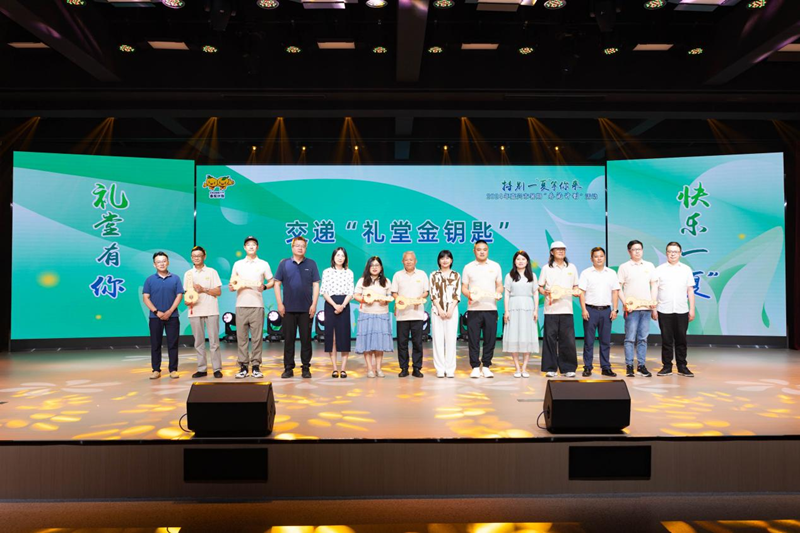 60多项文化特派课堂,将以文化礼堂为主阵地,面向社会免费开放。现场,7位文化特别员代表接过了“礼堂金钥匙”,返乡大学生们也化身嘉燕“春泥”暑托班班主任,他们将共同在文化礼堂里,为孩子们打开知识殿堂的大门,种下希望和美好的种子。