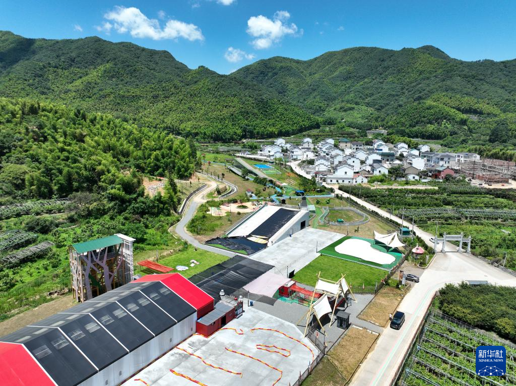 鸟瞰汪巷村的“四明玩酷”探险营地公园(7月3日摄,无人机照片)。