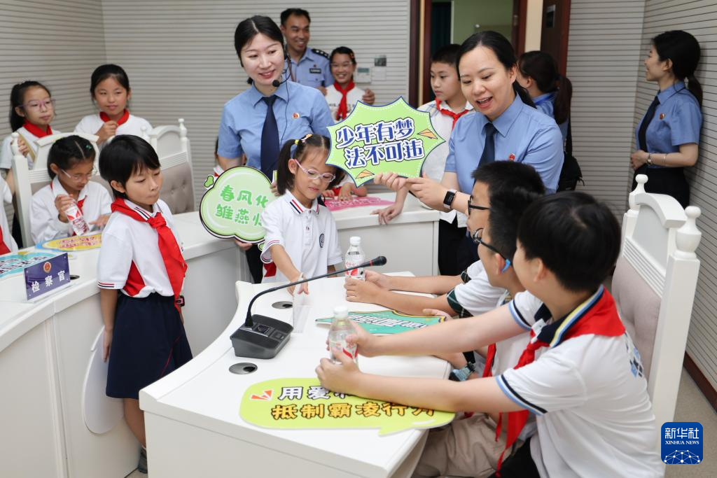 当日,浙江省湖州市爱山小学教育集团、月河小学教育集团等学校的一批小学生受邀来到湖州市吴兴区人民检察院,参加一场暑期安全普法小课堂。检察官提醒学生们暑期的安全注意事项,并带领参观未成年人检察办案区、公益诉讼快速检验实验室等,以增强学生们的自我保护意识。