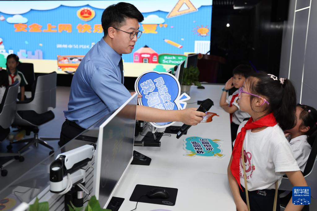 7月3日,小学生在湖州市吴兴区人民检察院参加暑期安全普法小课堂,回答有关网络安全的问题。