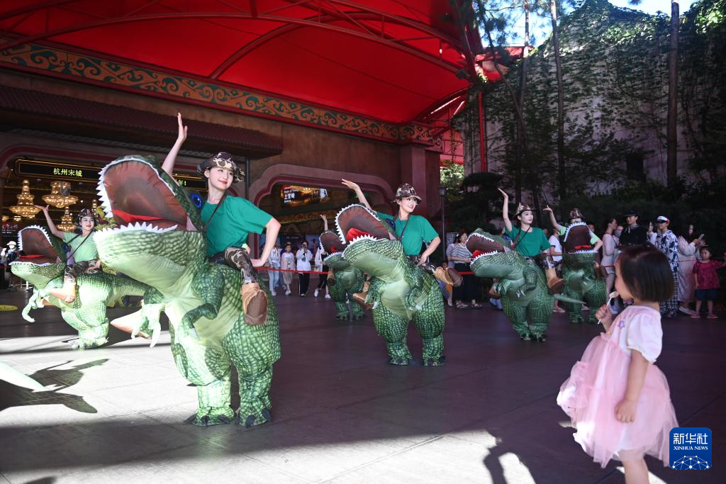 7月5日,游客在杭州宋城景区观看巡回表演。