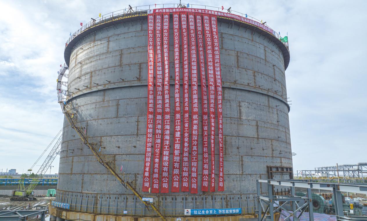 项目开工以来,浙江海港海洋工程建设有限公司作为建设管理单位,面对首次接触的新工艺,以及工程量大、涉及专业多等难点,全过程抓好现场安全、施工质量和进度管理,细化项目管理措施,根据平安百年品质工程创建要求,组织参建各方合理布置现场施工平面、改善施工作业条件、降低施工安全风险。接下来,该公司还将梳理撰写《低温罐拱顶气顶升标准施工工法》,为后续类似工程提供经验借鉴。(虞宁涛 张晟杰/文 浙江海港海洋工程建设有限公司/供图)