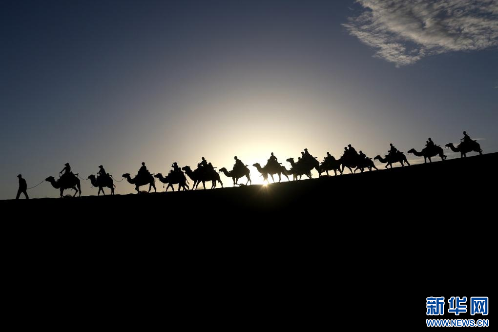 7月14日,游客在甘肃省敦煌市鸣沙山月牙泉景区游览。 新华社发 张晓亮 摄