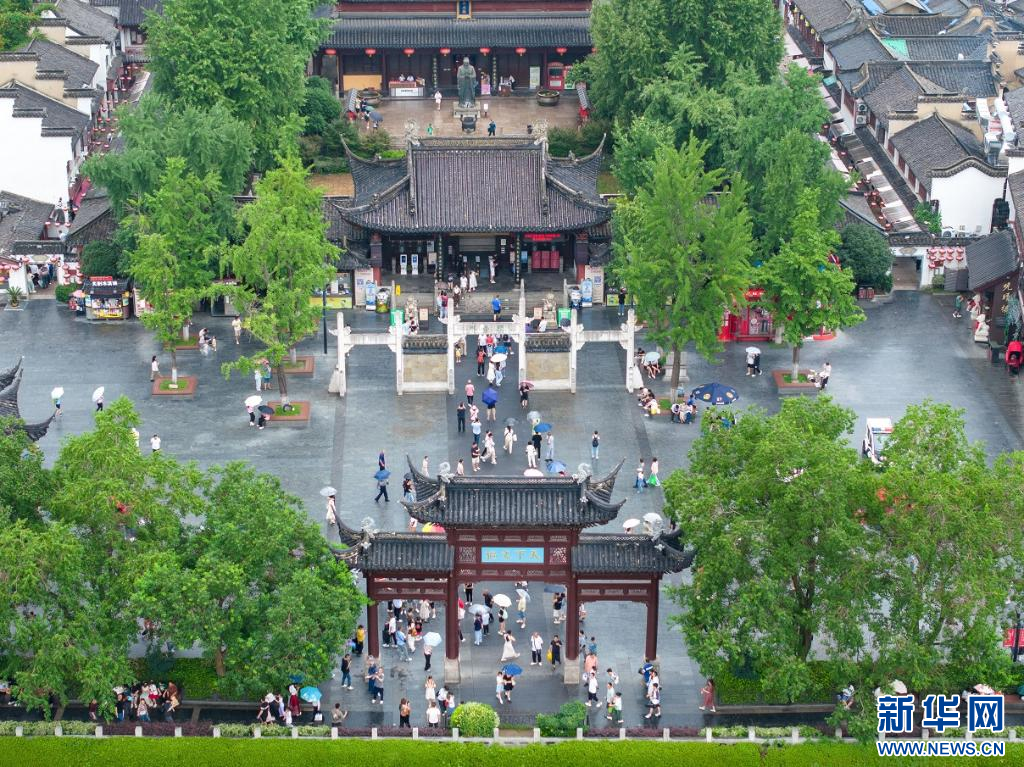 7月14日,游客在南京夫子庙景区游览(无人机照片)。 新华社发 杨素平 摄