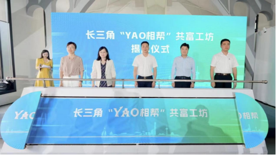 会议现场,长三角“YAO相帮”共富工坊揭牌,聚焦打造先行启动区跨域“15分钟灵活就业圈”,姚庄镇牵头建设长三角“YAO相帮”共富工坊,搭建省际毗邻乡镇线上线下就业服务平台,汇聚先行启动区企业订单资源,为五镇毗邻村社居民拓宽就业空间。在随后的跨域村社书记论坛上,5名村社书记代表分别上台就他们抓党建、强治理、谋发展、促振兴的故事进行了分享交流。