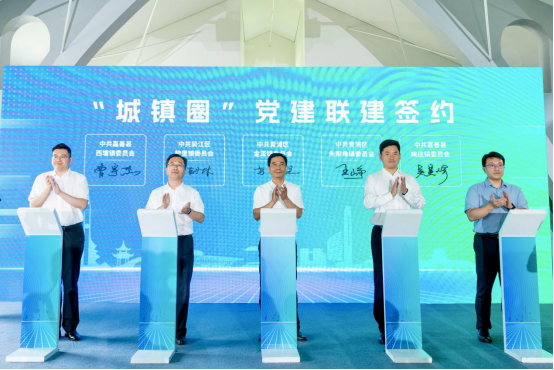 为进一步深化“城镇圈”党建工作机制,五镇党委研究制定《关于进一步深化长三角生态绿色一体化发展示范区先行启动区“城镇圈”党建工作的实施意见》,开展党的组织体系建设整体效能提升、基层治理共融共治、“四百”队伍建设提质强能、强化初心本色勇担发展使命、基层党建赋能增效等十项行动,为“城镇圈”党建工作进一步明确方向和重点任务。会议现场,五镇共同签署深化“城镇圈”党建联建协议。