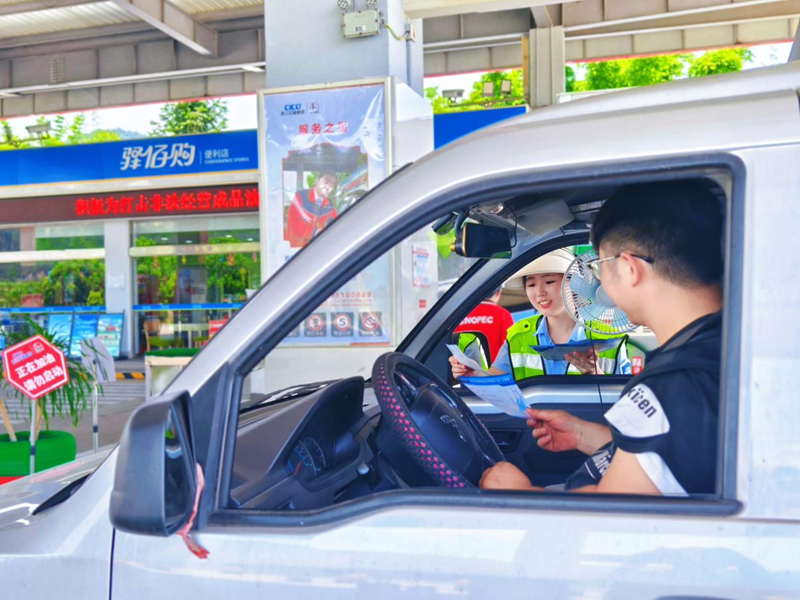志愿者在沿线服务区发放路线导图。