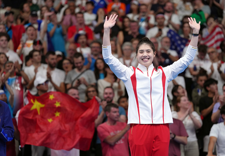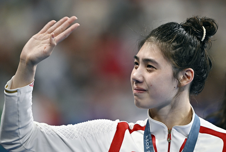 28日进行的巴黎奥运会女子100米蝶泳决赛中,张雨霏以56秒21的成绩摘得铜牌。结束比赛后,张雨霏向欢呼的观众挥手致意时,轻轻擦去了眼角的泪水。