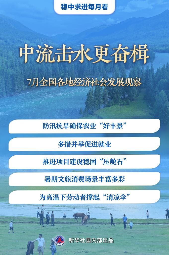 7月是下半年经济运行开局的关键时段。防汛抗旱应对极端天气挑战,促就业推出新举措,重大项目压茬推进……行至年中,各地凝聚力量,奋楫前进,不断增进民生福祉,更好地推动高质量发展。
