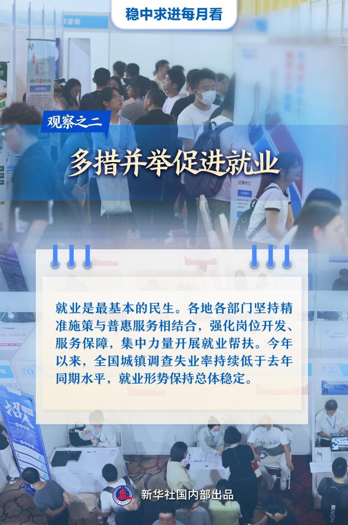 【记者观察】就业是最基本的民生。各地各部门坚持精准施策与普惠服务相结合,强化岗位开发、服务保障,集中力量开展就业帮扶。今年以来,全国城镇调查失业率持续低于去年同期水平,就业形势保持总体稳定。