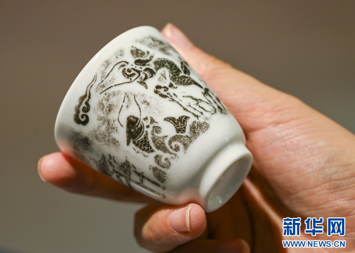 在浙江台州仙居县白塔镇上叶村仙居岩画艺术中心内,工作人员展示根据当地岩画开发的文创礼品(7月28日摄)。新华社记者 李贺 摄