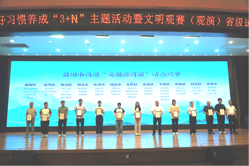 近日,在浙江省温州市举行的强城有我·文明好习惯养成“3+N”主题活动上,温州市首批41家“文明微管家”试点单位集中授牌。据悉,温州市创新推出“文明微管家”,旨在破解小区整治存在的相关疑难杂症,以此激发小区微治理活力。