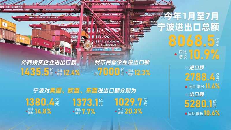 原标题:前7个月宁波进出口总额逾8000亿元 在全国外贸前10强城市排名中继续保持第5位