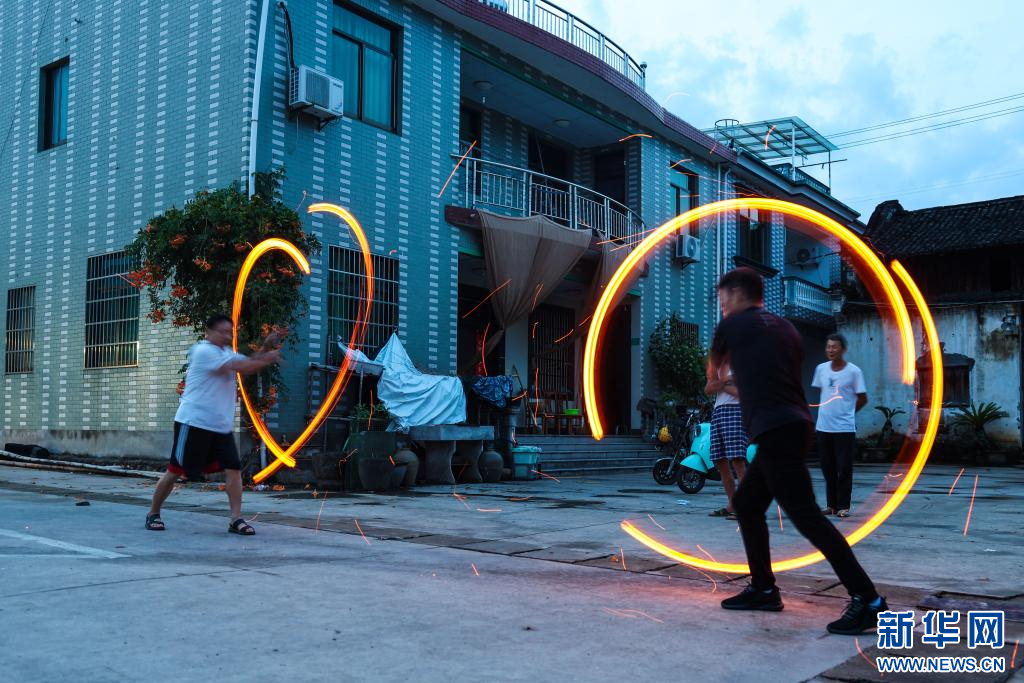 8月14日夜,诸暨市赵家镇花明泉村村民在村口跨越黄檀溪的桥上乘凉。