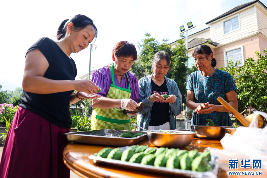8月15日,诸暨市赵家镇花明泉村村民使用古井井水洗菜。