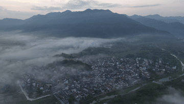 群山、溪水、稻田与粉墙黛瓦的古宅