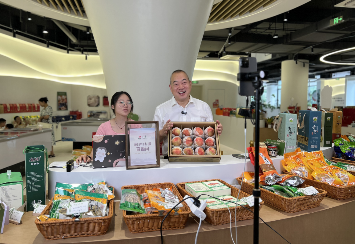 “大家好,我是老朋友姚兴军,今天为大家带来我们村的生态菜籽油。色泽金黄、油香扑鼻、无油渣沉淀,无论是自家食用还是送亲朋好友都很合适。”每到午休时间,浙江省杭州市桐庐县横村镇杜预村“稻香鸭田”共富工坊总会响起直播的声音,杜预村党总支书记、村委会主任姚兴军在直播间热情地为“粉丝”介绍本村及周边乡镇的农产品。
