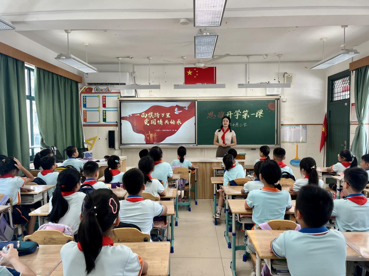 “去年建队节,在中原小学的操场上,一面来自5766公里之外的国旗借助无人机升起。你们想知道这面国旗的故事吗?”9月1日,爱国主义教育和国防教育成为“曙说·思政首课”的主旋律。“曙说”青年宣讲员、中原小学大队辅导员董二毓以《一面旗跨万里 爱国情共传承》为题,跟孩子们分享。