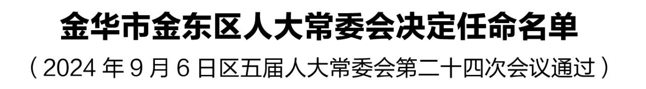 9月6日,金华市金东区五届人大常委会第二十四次会议召开。区人大常委会主任李剑辉,副主任郑竟成、朱茂丹、张斌、章晓良、陈小华、郭文洁参加。区委常委、组织部长陈春梅作关于人事任免的说明,区委常委、副区长夏志坚宣读有关议案。区法院、区检察院、区监委相关负责人列席。