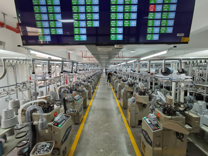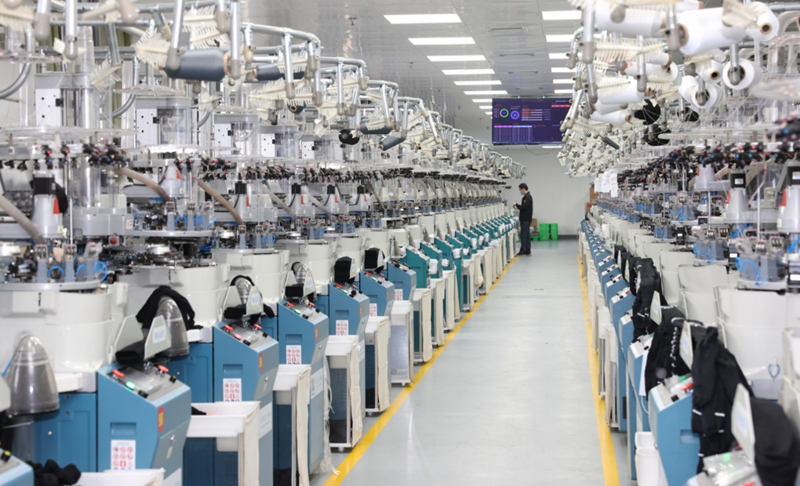 走进浙江亿衡针织有限公司数字车间,五颜六色的丝线上下翻飞,380台智能一体袜机正开足马力,高速运转。这是亿衡针织的“数字倚天剑”,整合了袜子织造、缝头、翻袜这三道工序,将原来40天的订单周期缩短至30天,减少近45%人工,大幅提升了产品质量。