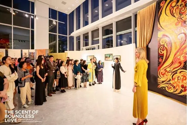 本次展览由法国著名香水历史学家、中法香水文化年荣誉大使伊丽莎白·德·费多策展,带领观众踏上一场以“柳儿”香水故事为核心的沉浸式旅程,步入展览,五大主题区域通过视、听、触、嗅多重感官体验,走进普契尼的传奇人生和娇兰的艺术世界。参观者们们可以见到众多首次亮相的娇兰初代古董香水瓶、2008年国家大剧院首演《图兰朵》时的珍贵服饰、漆画《今夜无人入睡》高达4米的初代底稿,以及大量灵感影像和闻香体验。