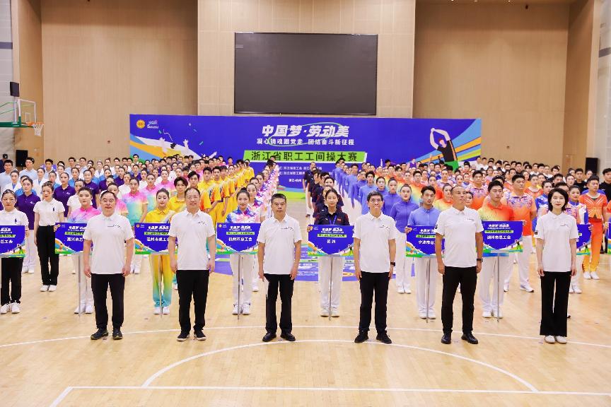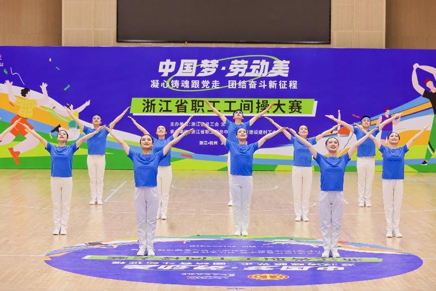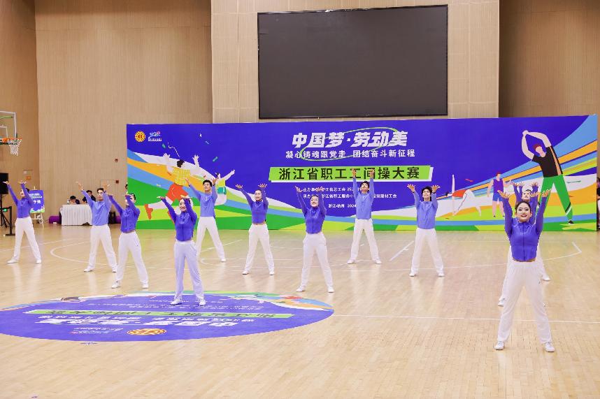 据悉,此次比赛由浙江省总工会、浙江省体育局主办,浙江省职工服务中心、浙江省建设建材工会承办。经过一天的角逐,第九套广播体操和工间操分别评出特等奖2个、一等奖3个、二等奖5个。(鲁新/文 浙江省职工工间操大赛组委会供图)