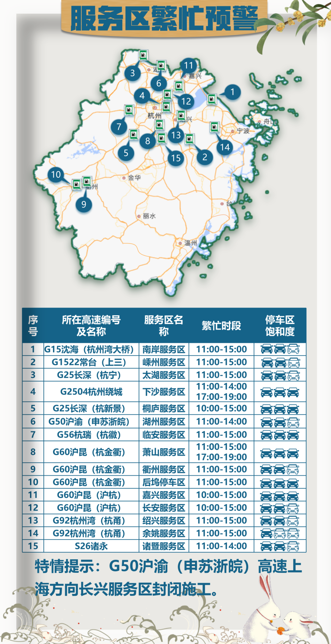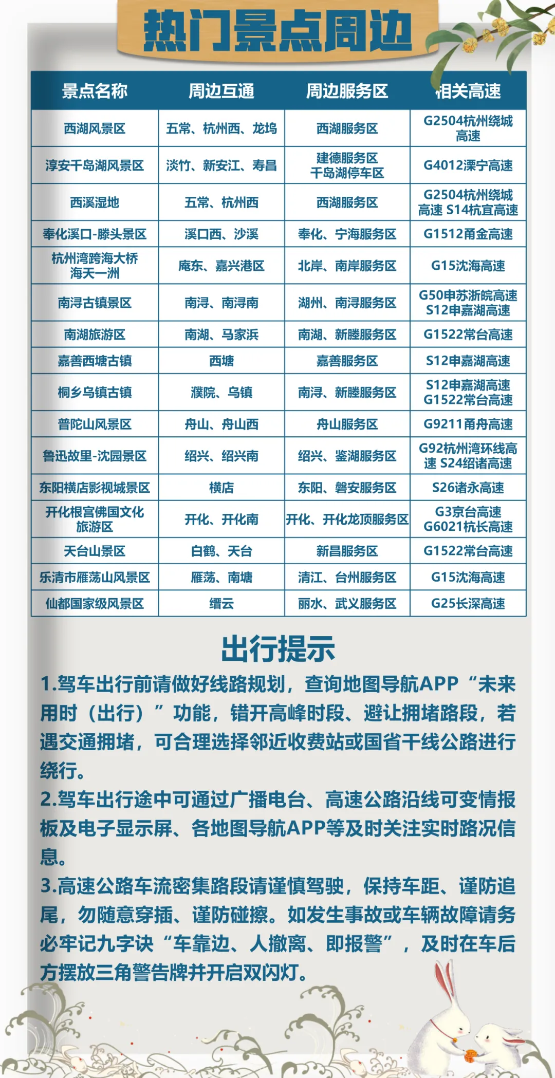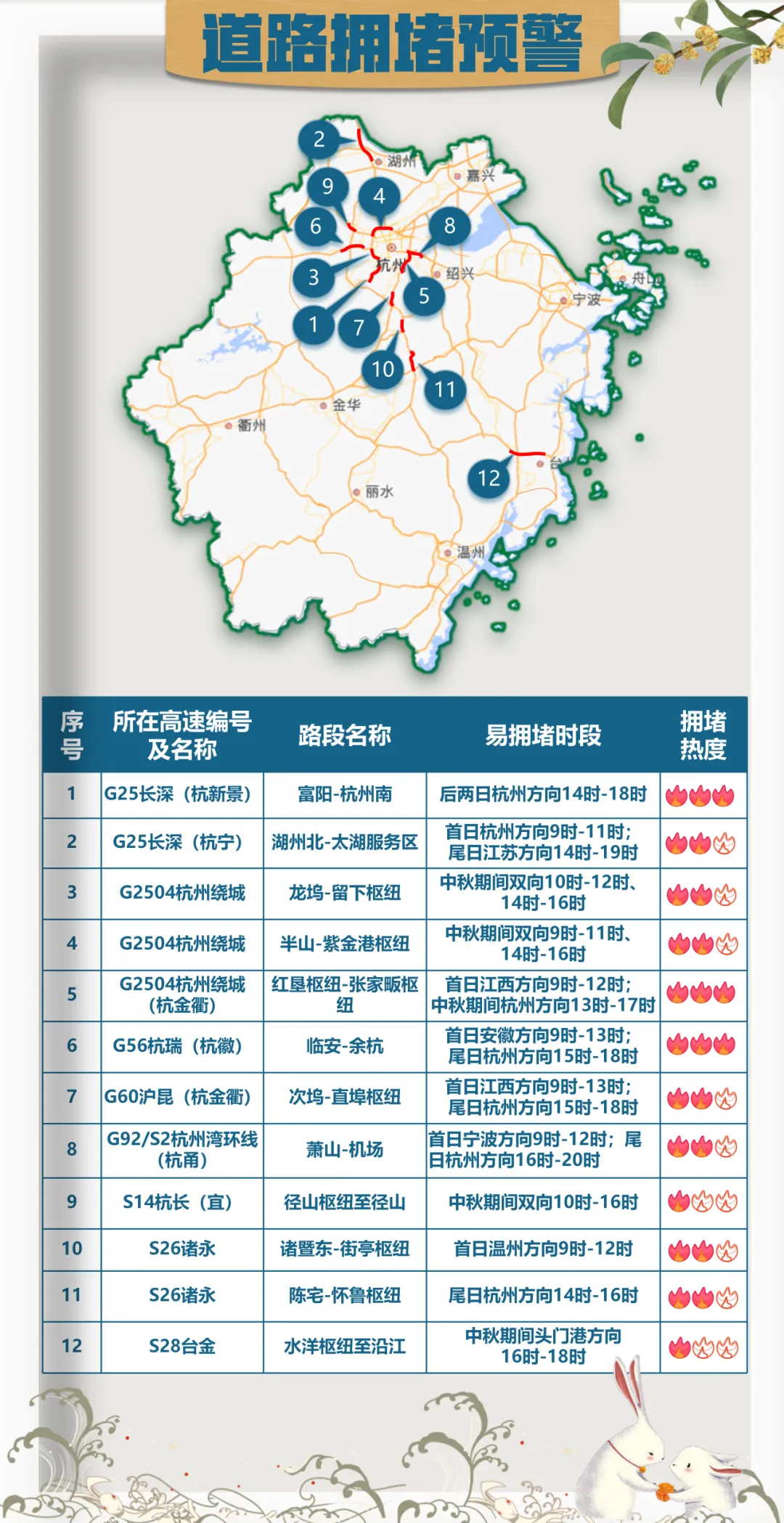 浙江哪些路段易堵?往返高峰在什么时段?中秋假期出行服务指南来了