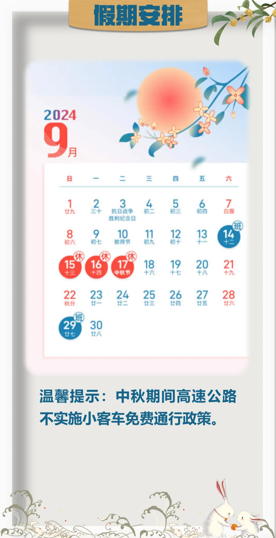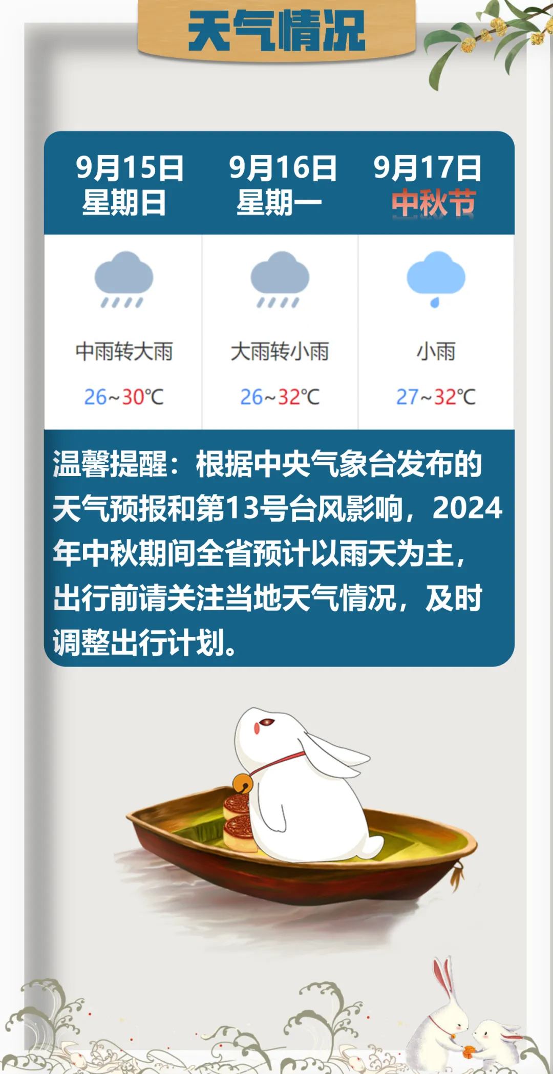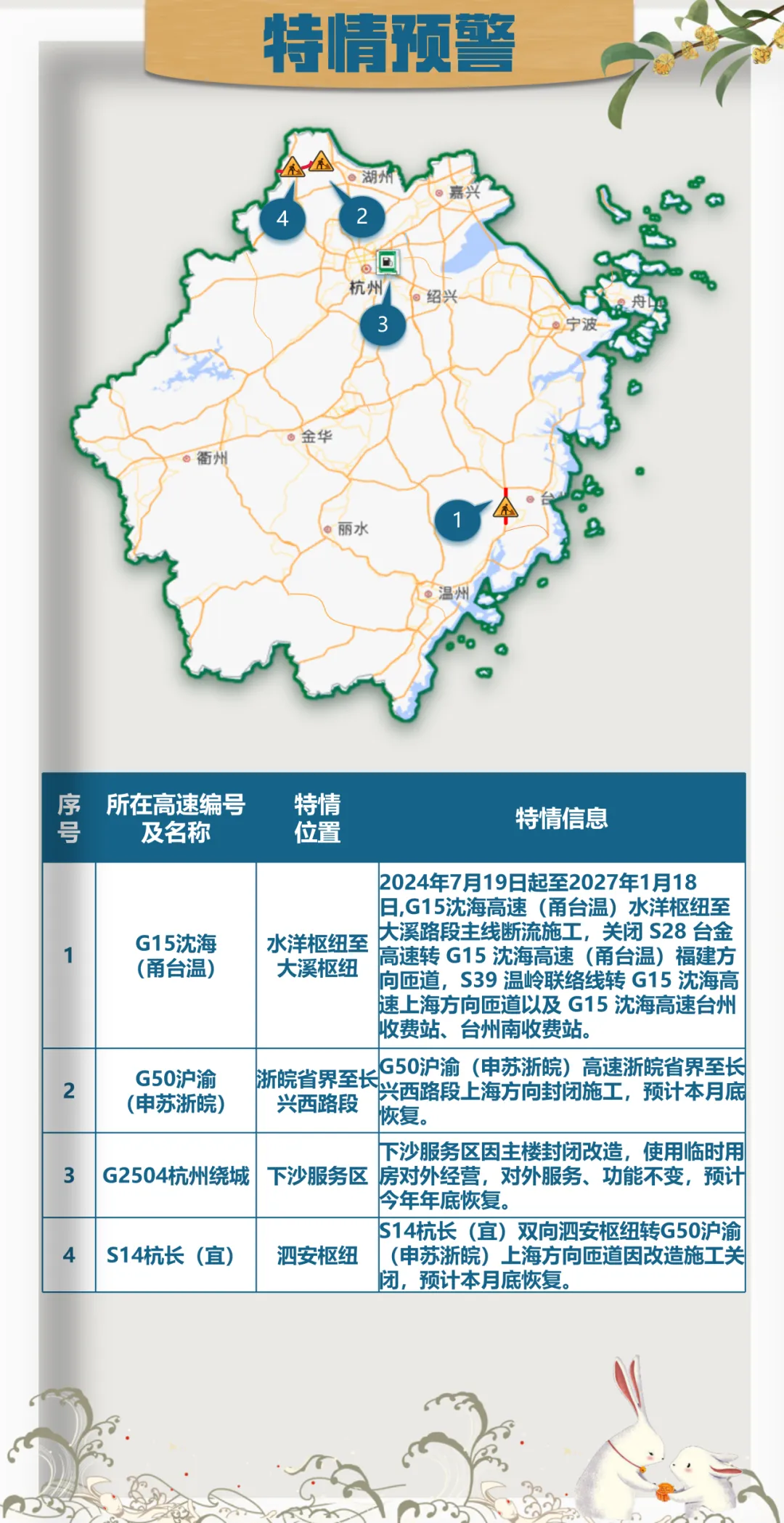 2024年中秋假期即将到来,不少人已经安排好了旅游、探亲等出行计划。假期天气如何?高速哪些路段、时段容易拥堵?这份“浙江省高速公路出行服务指南”请收好。