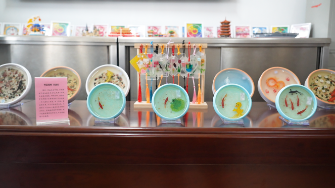 在这个教室内,陈列着许多学员创作的艺术成品。其中,名为《归航》的连环水晶画被摆在了显眼位置。“这是我最喜欢的作品,四幅画讲述了鱼儿迷失方向脱离鱼群,但最终找到正确方向的故事。”赵刚说,“他们就像迷途的鱼,我们要做的,就是当好引路人。”