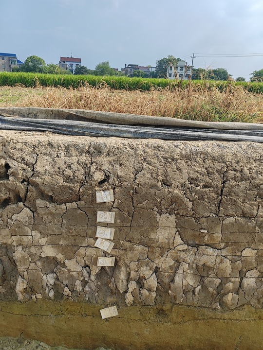 图为皇朝墩遗址考古揭示的稻田地层。新华社记者 冯源 摄