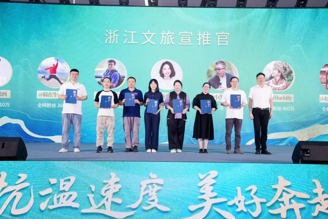 值得关注的是,现场,浙江省文化广电和旅游厅授予新闻姐、小黑诸鸣、张力视觉等网络达人“浙江文旅宣推官”聘书,他们将更好地讲好浙江文旅发展故事。与此同时,“诗画浙江 为美好生活而来”——浙江文旅首届金牌宣传大使挑战赛拉开帷幕,旨在激励更多人士加入浙江文旅的推广行列,从多元化的视角展现浙江的独特魅力。浙江文旅宣推官代表朱小杰在现场讲述了杭温高铁沿线地区文化的深厚历史,从浦江的史前文化到“越山向海”的精神,再到东阳的非遗木雕和横店影视城的现代化创新,每一站都是对浙江文化的深度诠释。
