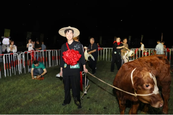 留住浓浓村味,锁住层层土味。除了看客变主角,240公斤的黄牛、130公斤的活猪、20公斤的本地山羊……富含土味的奖品让选手斗志满满。经过两个多小时的三轮火热角逐,航埠镇选手叶应祥凭借一曲《乌兰巴托的夜》夺冠,牵走首奖大黄牛。“第一次见比赛奖品是活着的猪、牛、羊、大白鹅、大公鸡,很有意思。大家一直在网上讨论大黄牛会花落谁家,没想到我能拿到头奖。”叶应祥说。