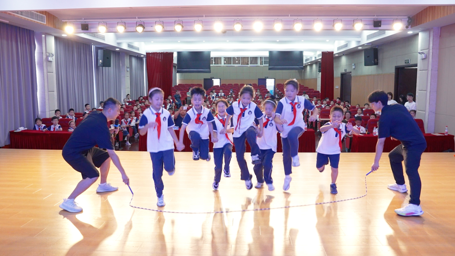 此外,冠军团队还带来了一场精彩绝伦的花样跳绳表演秀,瞬间点燃了现场师生的运动激情。他们巧妙地将复杂绳技化繁为简,让跳绳小白都能轻松领略。同台竞技环节,学生们与冠军团队并肩pk,绳影交错间,速度与激情并蓄。在冠军团队的带领下,掌声、欢呼声此起彼伏,现场气氛被推向了高潮,师生们都沉浸在跳绳运动的魅力之中。