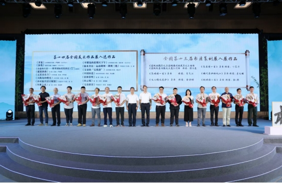 9月20日,在湖州遇见“最江南”——第十二届湖笔文化节在浙江湖州开幕。开幕式上,入选第十四届全国美展、第十三届全国书法篆刻展的创作者,收到了来自浙江省文联、湖州市委有关领导的献花。