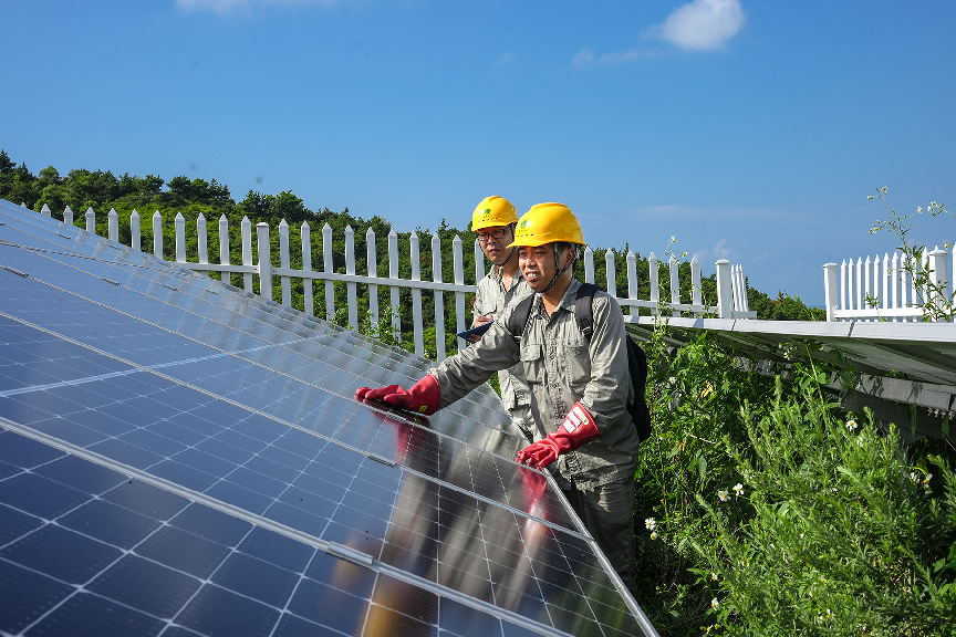 国网温州市洞头区供电公司员工在南策岛对光伏设备开展安全专项检查。叶元武 摄