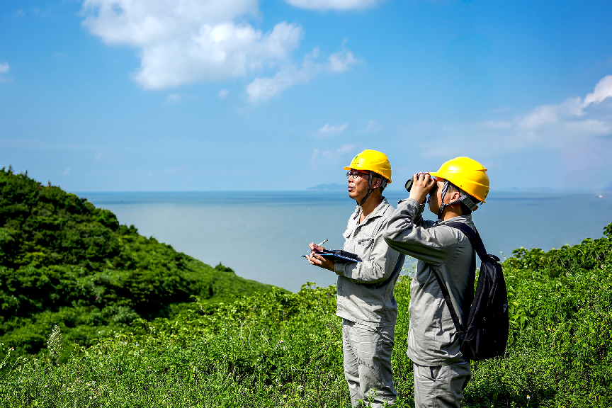 国网温州市洞头区供电公司员工在南策岛对线路进行巡视。叶元武 摄