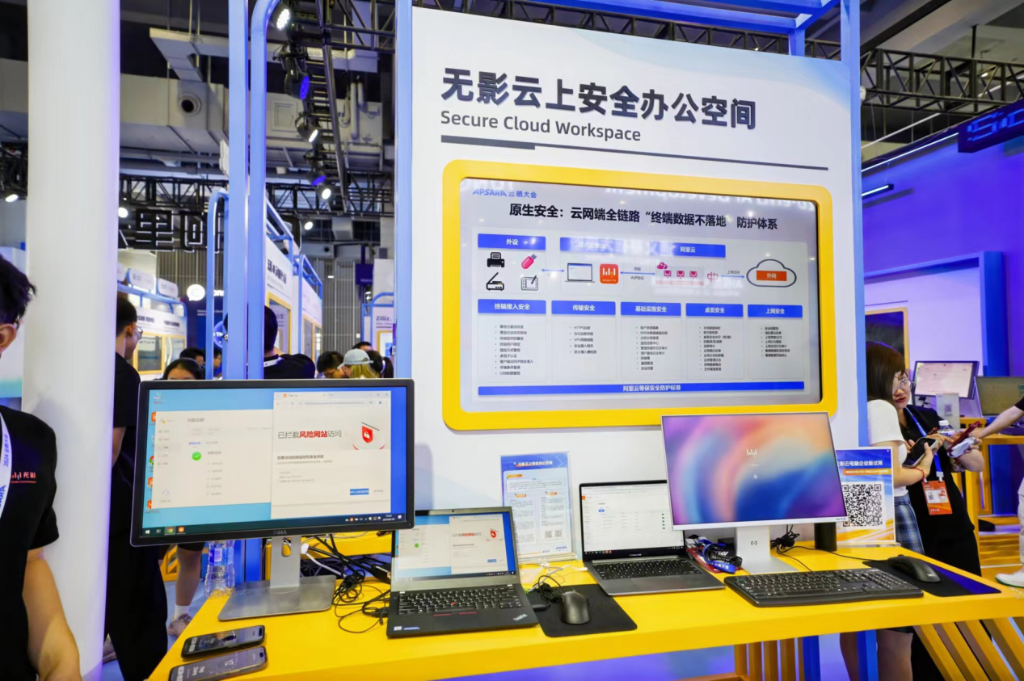在云栖大会的现场,无影云电脑的展示区吸引了众多参观者的目光。