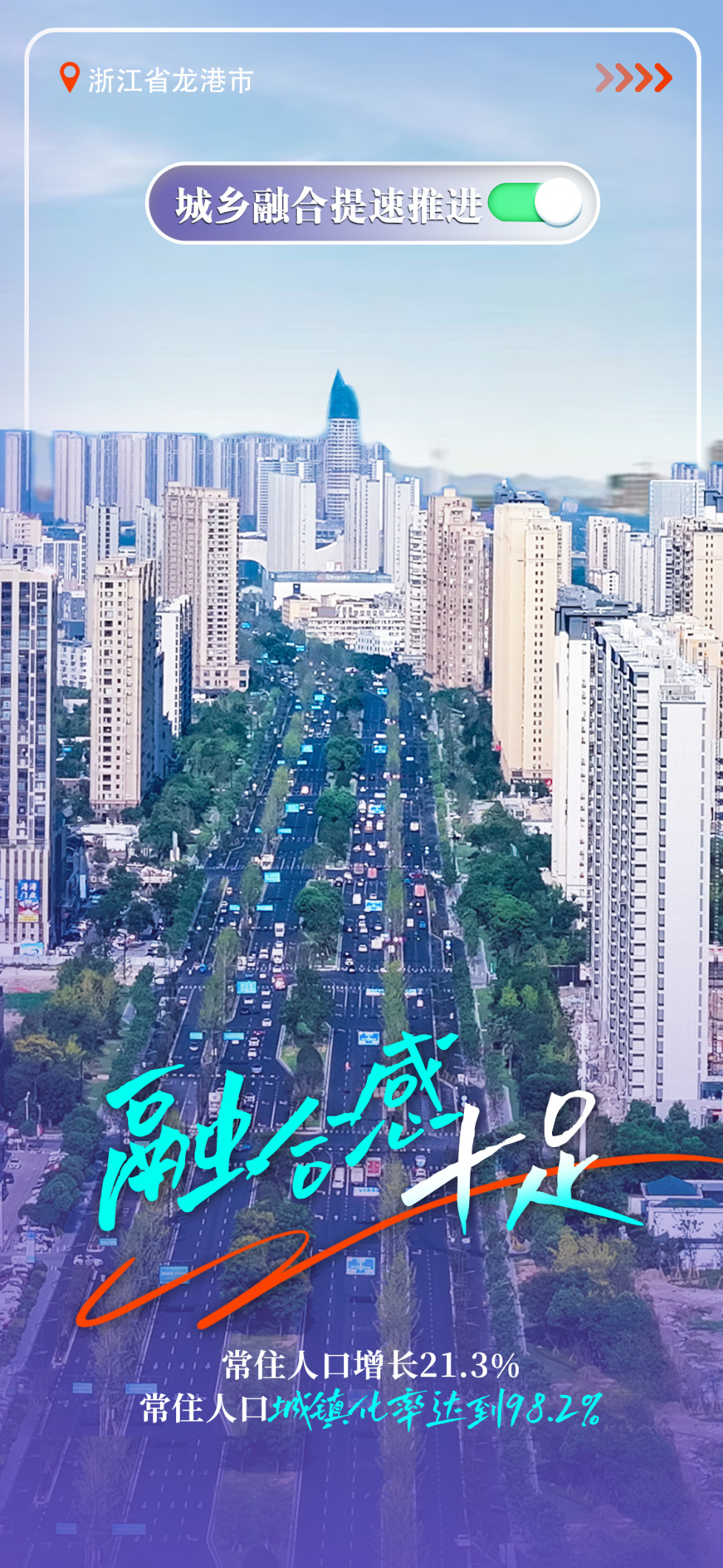 ——城乡融合提速推进。率先实现“全域城市化、就地市民化”,常住人口增长21.3%,常住人口城镇化率达到98.2%。