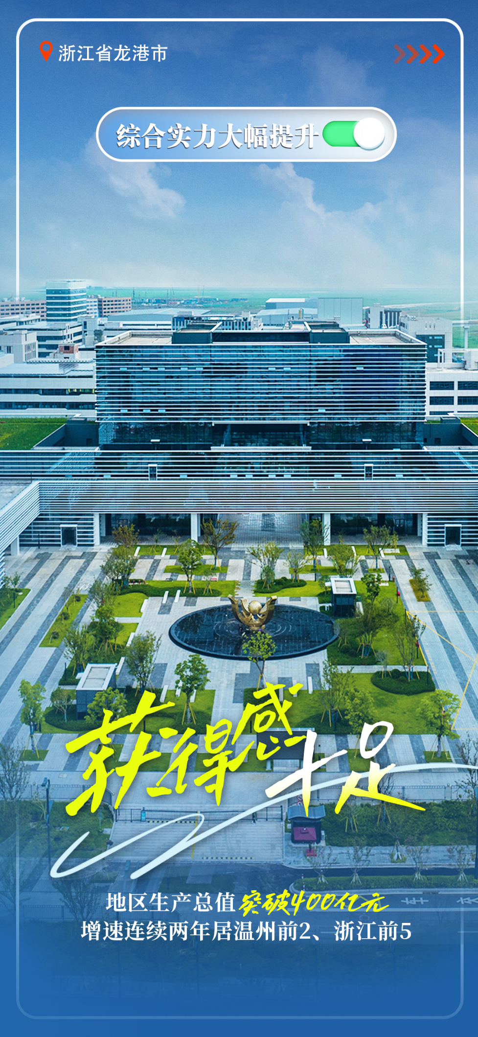 ——综合实力大幅提升。地区生产总值突破400亿元,增速连续两年居温州前2、浙江前5。