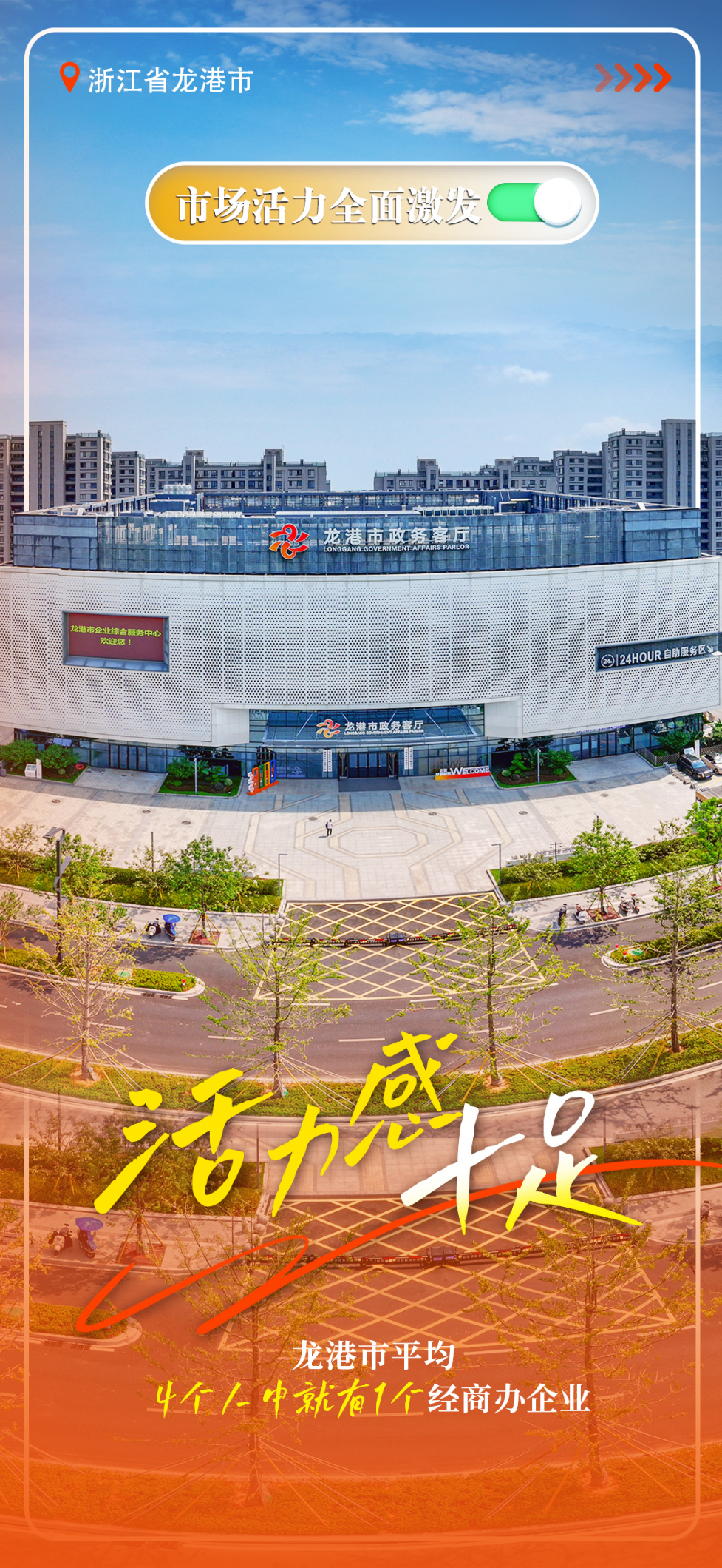 ——市场活力全面激发。去年龙港新增经营主体和每万人经营主体拥有量均跃居浙江省前3,平均4个人中就有1个经商办企业。