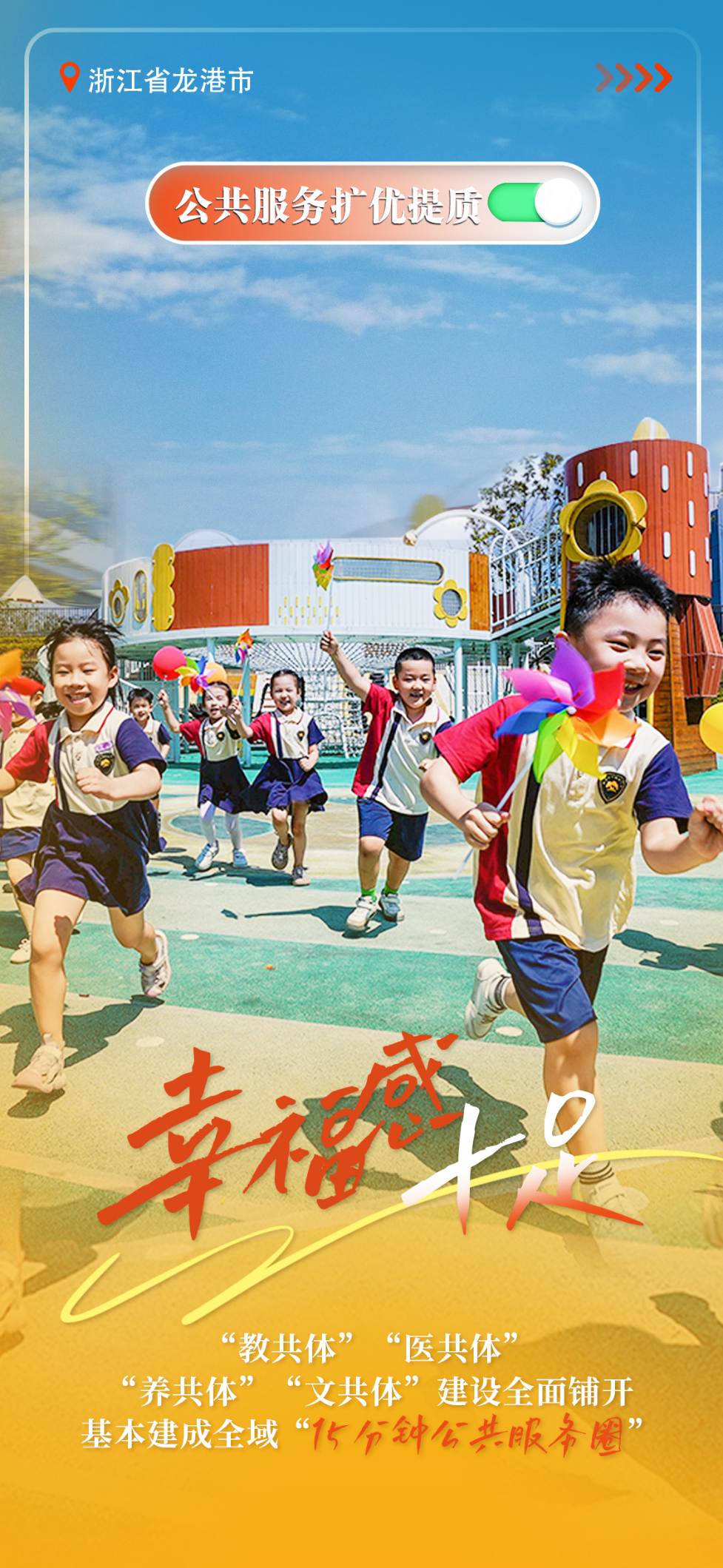 ——公共服务扩优提质。“教共体”“医共体”“养共体”“文共体”建设全面铺开,基本建成全域“15分钟公共服务圈”。