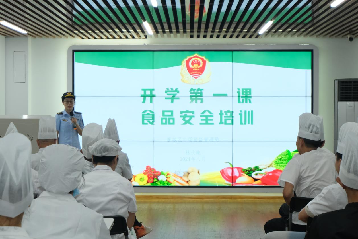 温州市鹿城区市场监管局滨江市场监管所开展学校食堂从业人员食品安全培训。温州市鹿城区市场监管局供图